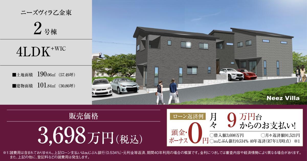 | 建物延べ床面積 | ・1号地・・101.85㎡ ・2号地・・101.84㎡ |