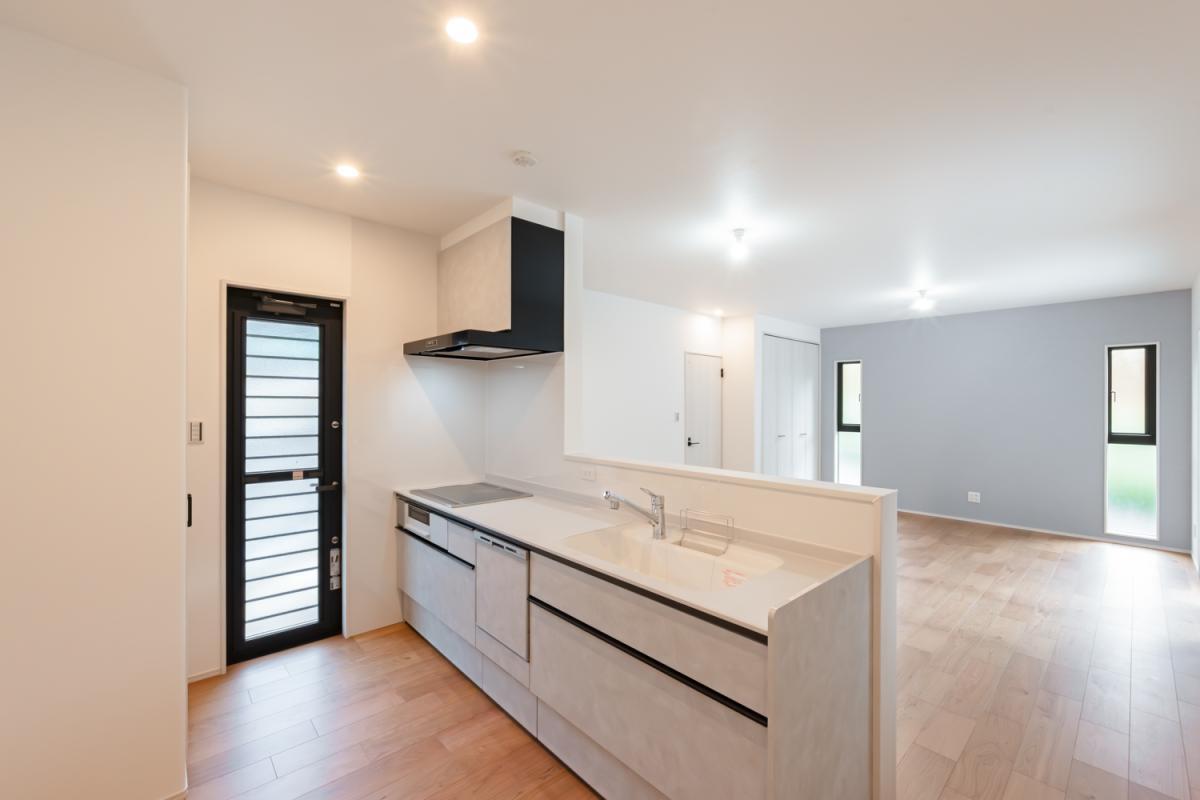 インテリアに合わせて、カラーコーディネートしています。キッチンのインテリア性を高めます。ナチュラルな質感で、耐久性にも優れた人造大理石トップです。
