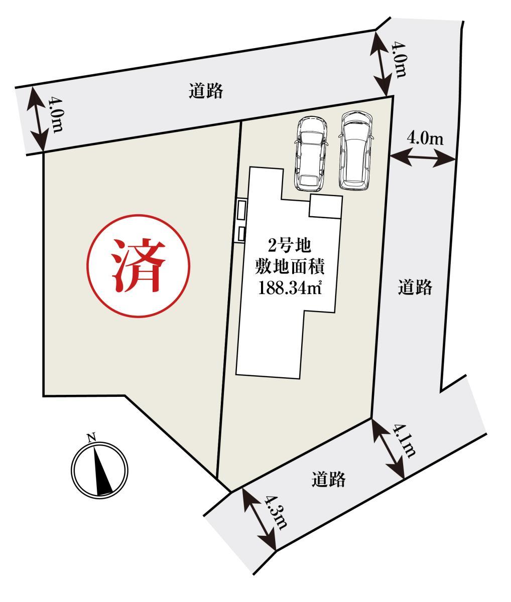 | 土地面積 | ・2号地:188.34㎡(56.97坪) |