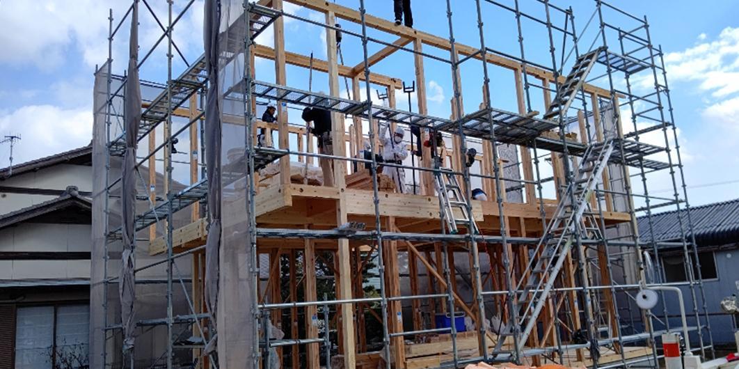 建て方とは、家の主な構造となる材料を組み上げることを指します。 木造住宅ならば、土台の据え付け、1階の柱+梁を組む、2階では桁+柱を組み、屋根部分の一番高いところにある棟木を上げるところまでを含みます。